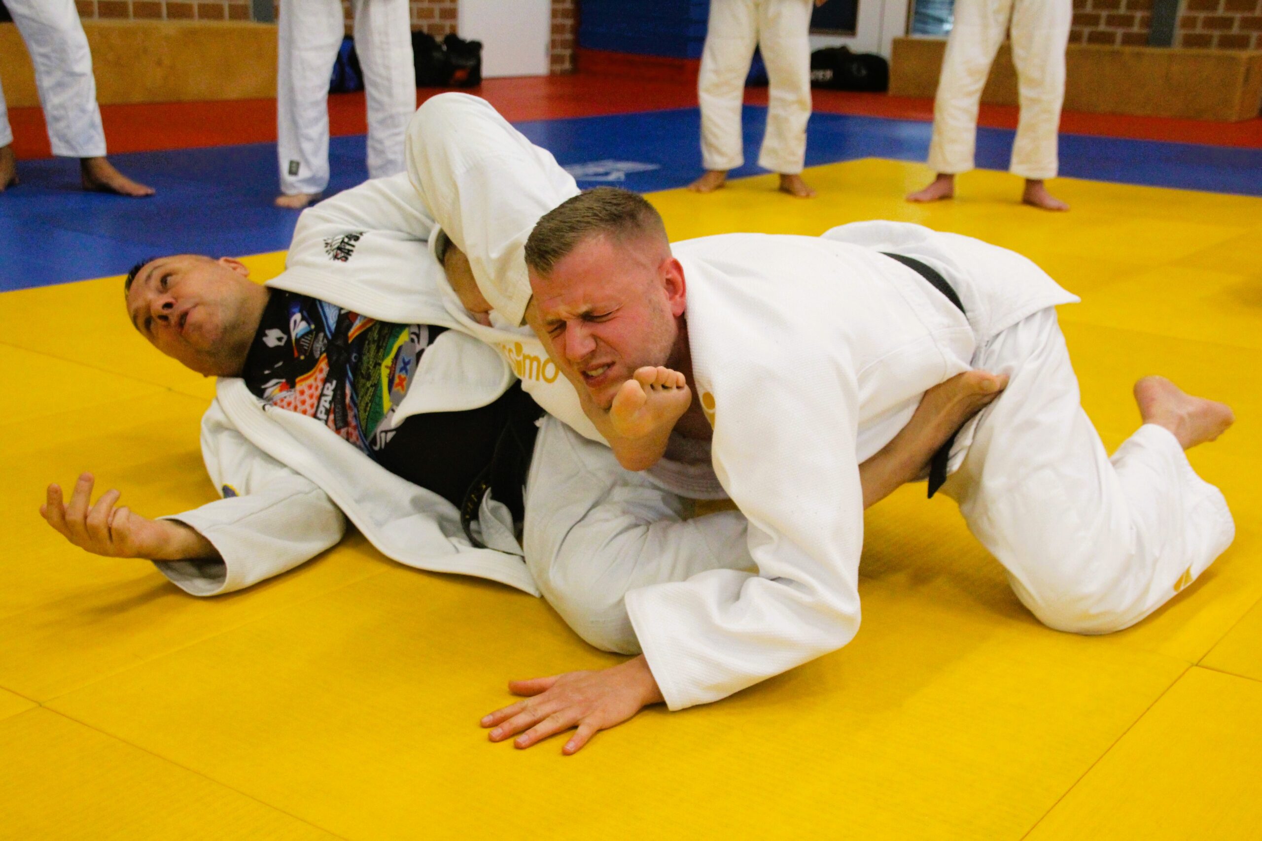 Tijdens het eerste blok introduceerde Remco Pardoel de groep in de drie basisprincipes van Braziliaans Jiu Jitsu (BJJ), met als centrale gedachte: vertrouwen in je eigen kunnen om je doel te bereiken. Remco Pardoel is een lesgever die houdt van praktische en direct toepasbare oplossingen.