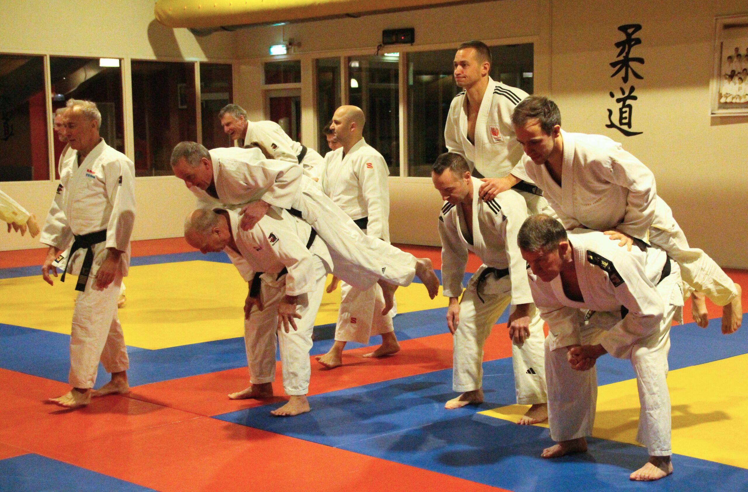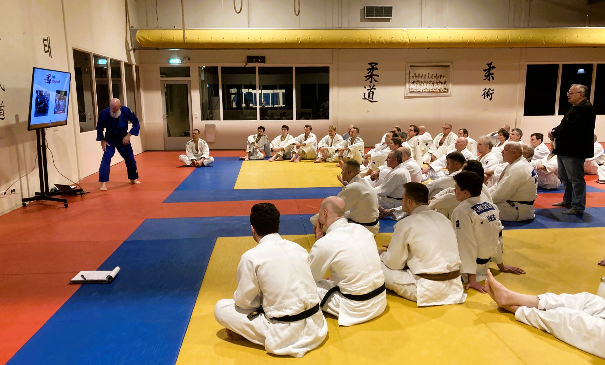 Tijdens het eerste uur liet Jeroen Dahmen de judoka’s op een korte maar krachtige manier kennismaken met diverse lesvormen, vooral gericht op de wat oudere judoka’s. Zijn warming‑up bestond volledig uit judo gerelateerde oefeningen. Zijn motto is duidelijk: houd het functioneel en vermijd algemene oefeningen zoals hardlopen, opdrukken en buikspieroefeningen.