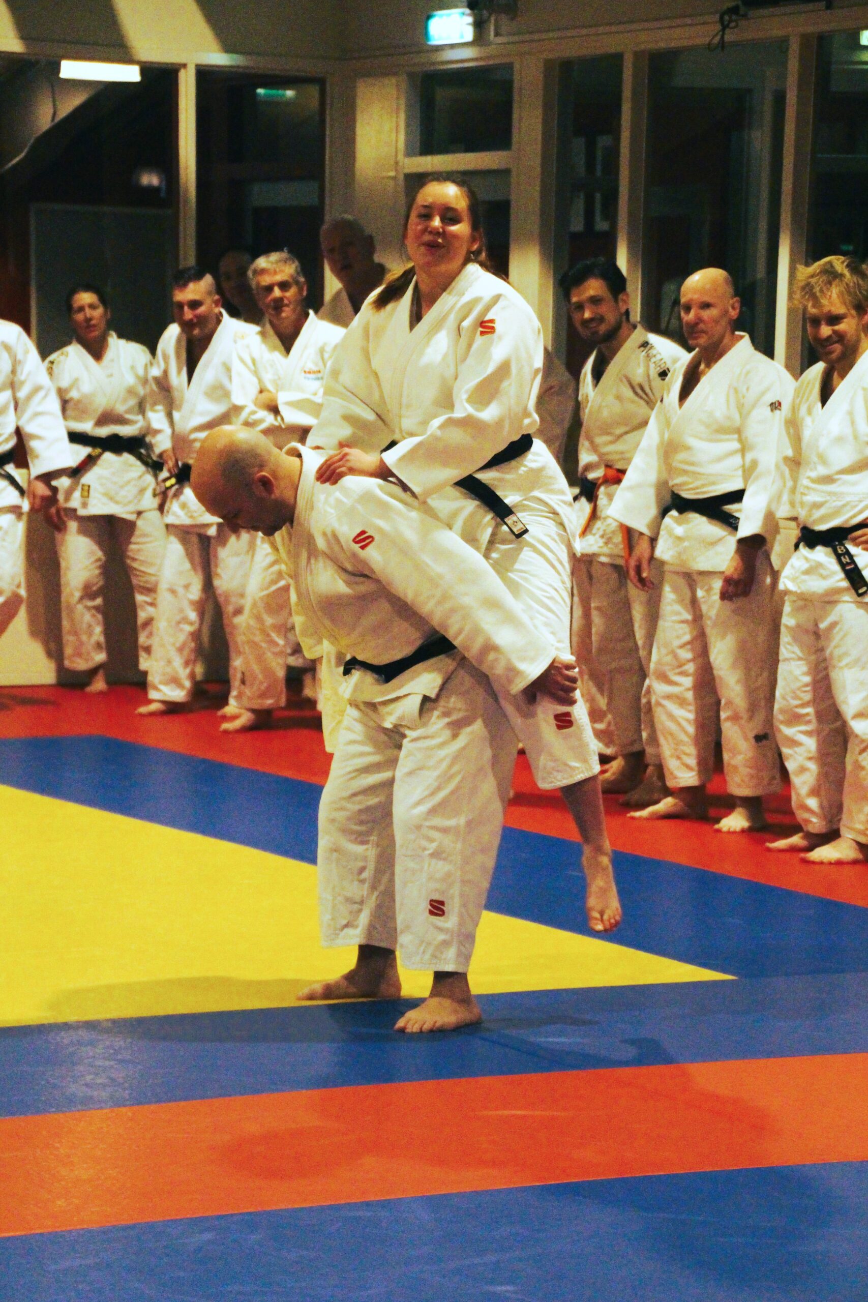Voor deze workshop koos Jeroen voor ippon‑seoi‑nage, inclusief de vele vervolgvariaties. Zijn benadering draaide om balans vinden, balans trainen en de talloze mogelijkheden die daarbij horen. Hij benadrukte dat de vijf aandachtspunten bij elke worp essentieel zijn: je eigen positie, het voetenwerk, het verstoren van de balans, je eigen balans en richting en niet te vergeten veiligheid